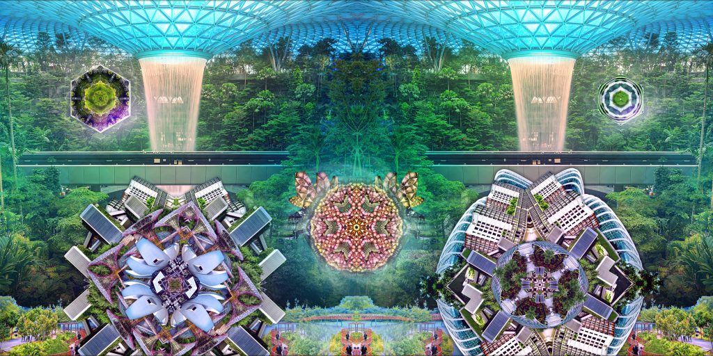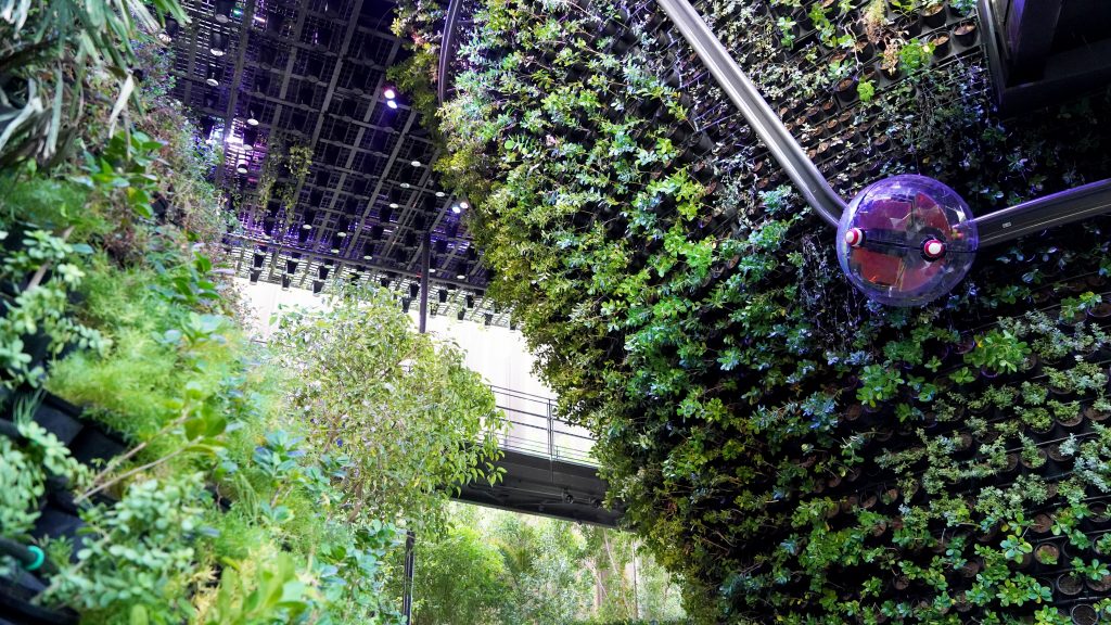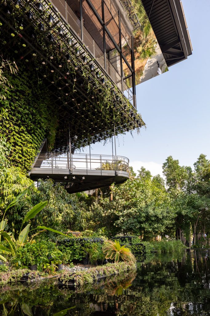 Beyond the green architecture of the Pavilion, this guiding ethos of sustainable development is also distilled into multimedia showcases. At the City Cone, visitors will be taken on an immersive voyage, in a commissioned cinematic experience by leading Singaporean creative Brian Gothong Tan.